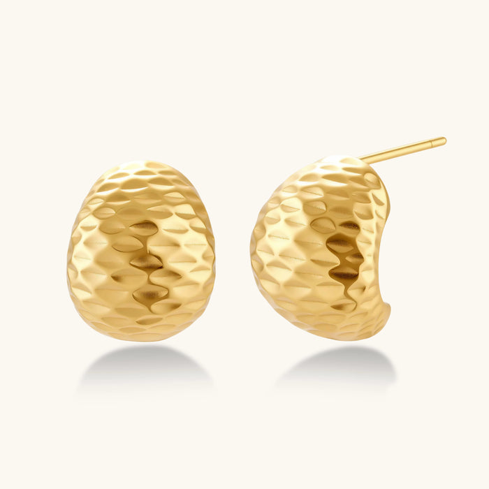 These textured beauties channel confidence and warmth with their hammered finish that catches light from every angle.