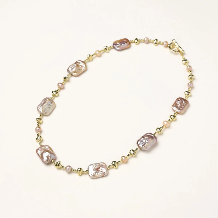 Iridescent baroque pearls—known for nurturing feminine energy—catch light from every angle in this dreamy 14K gold-plated piece.