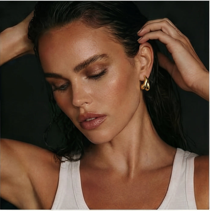 14K gold-plated sculptural studs with fluid, organic shapes that channel confidence and warmth.